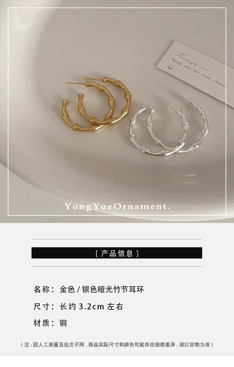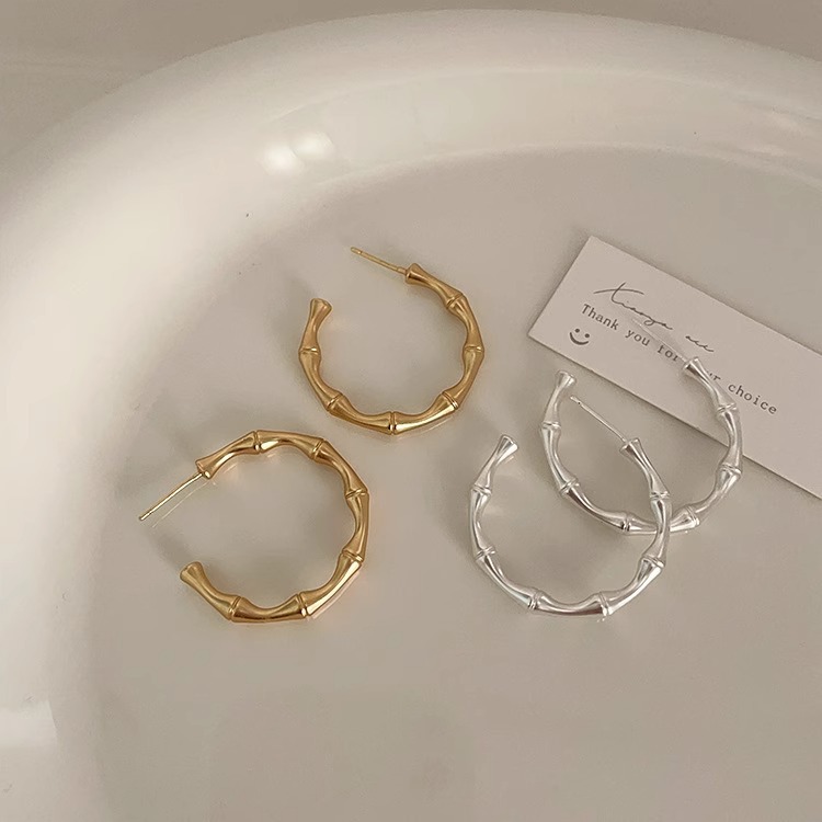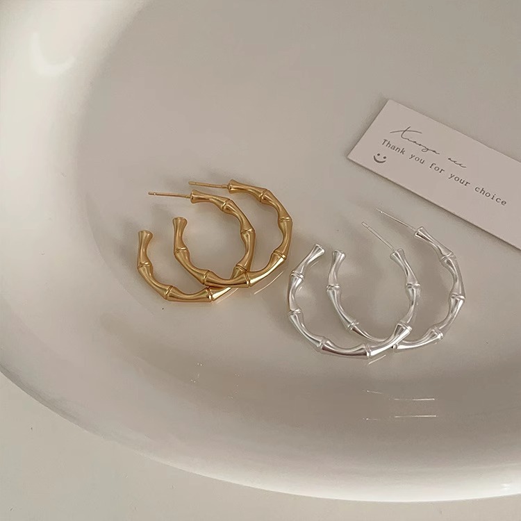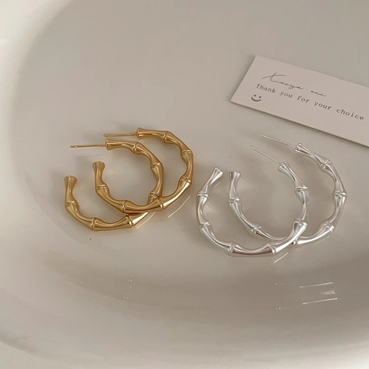 Bamboo Matte Metal Earrings For Women Design Niche Retro Simple Versatile Temperament Earrings