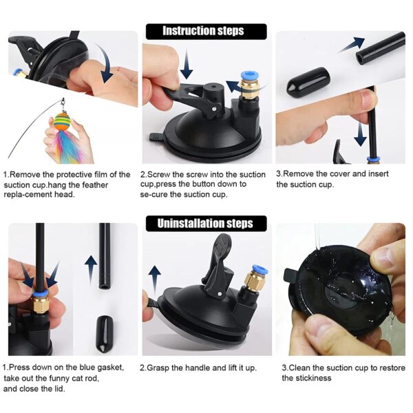 • Suction cup type: You can fix it on the floor or wall, and the cat will play with it. You can separate the stick from the base, hold it and play with the cat.